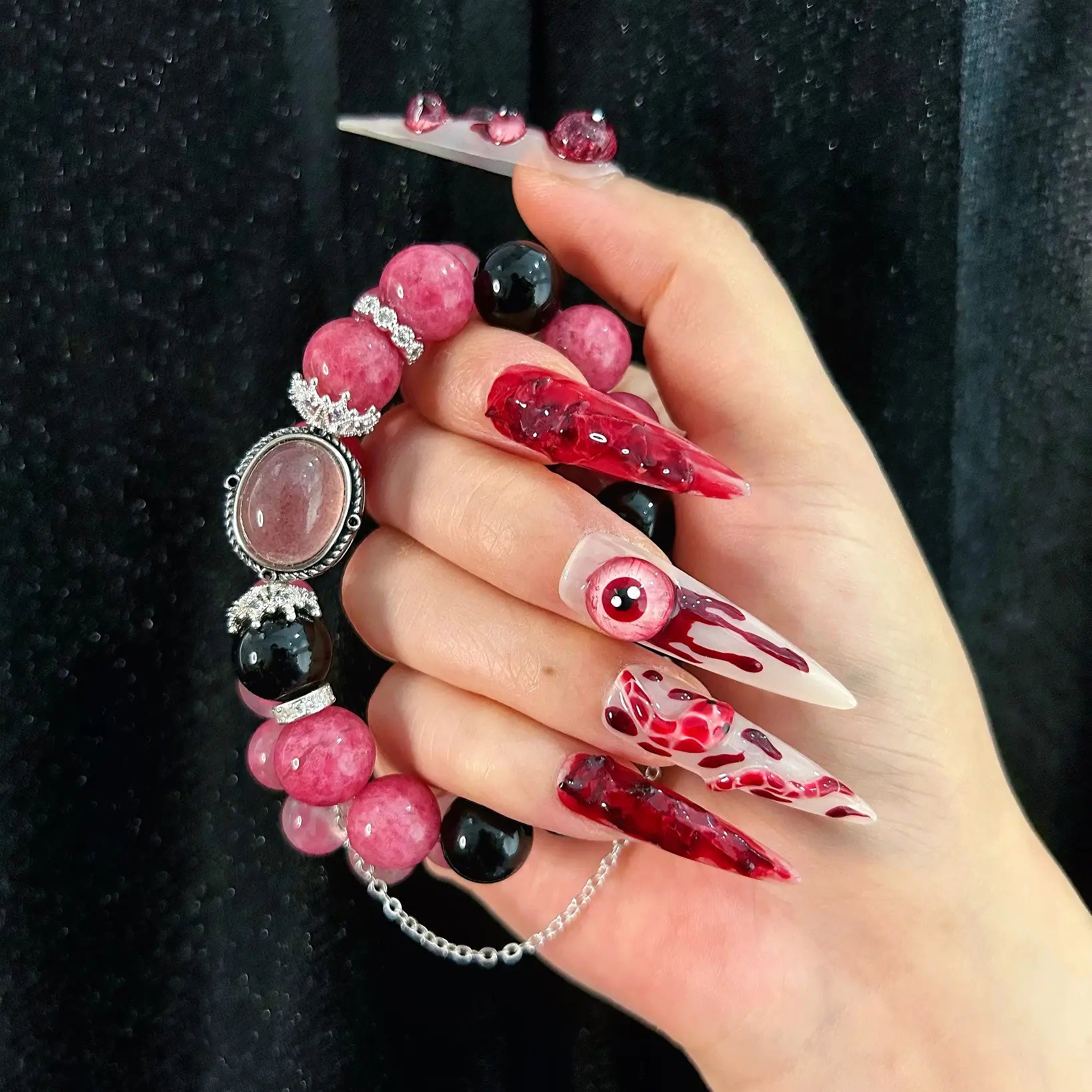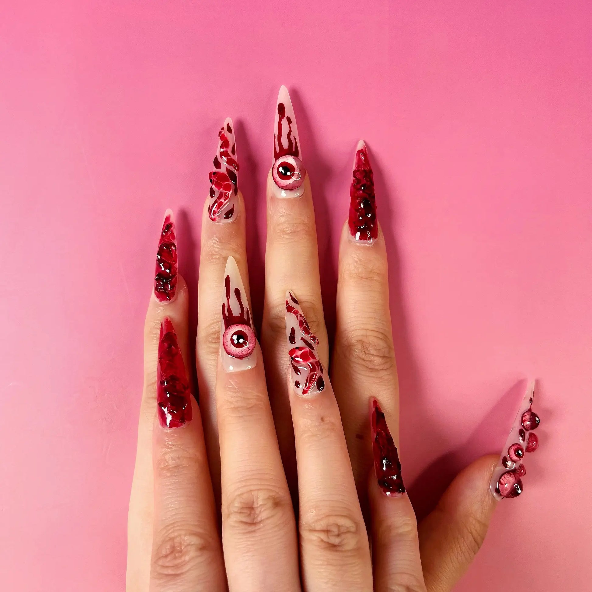 COLOR: RED & WHITE | DESIGN: BLOOD & EYEBALL | FINISH: GLOSSY | LENGTH: EXTRA LONG | BEST SELLERS | STYLE:SHADOW | LIMITED EDITION | SHAPE: STILETTO
