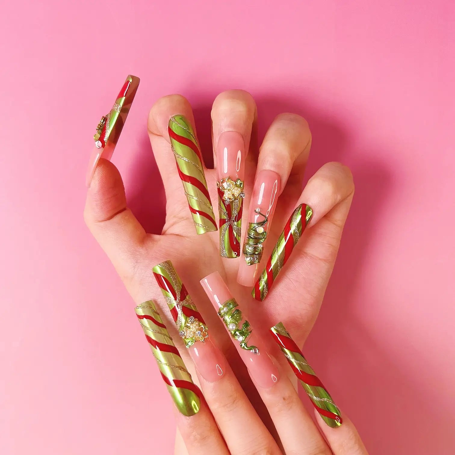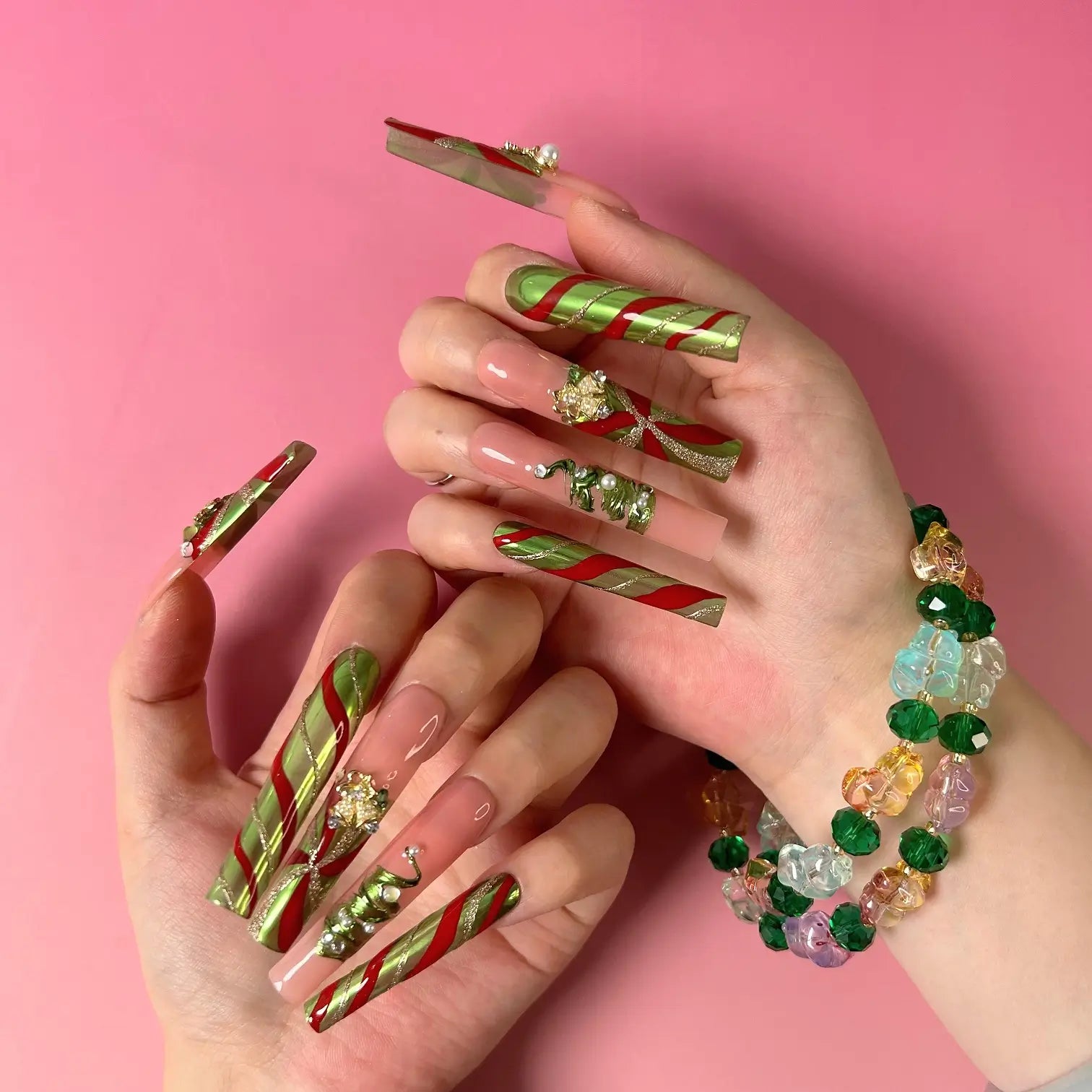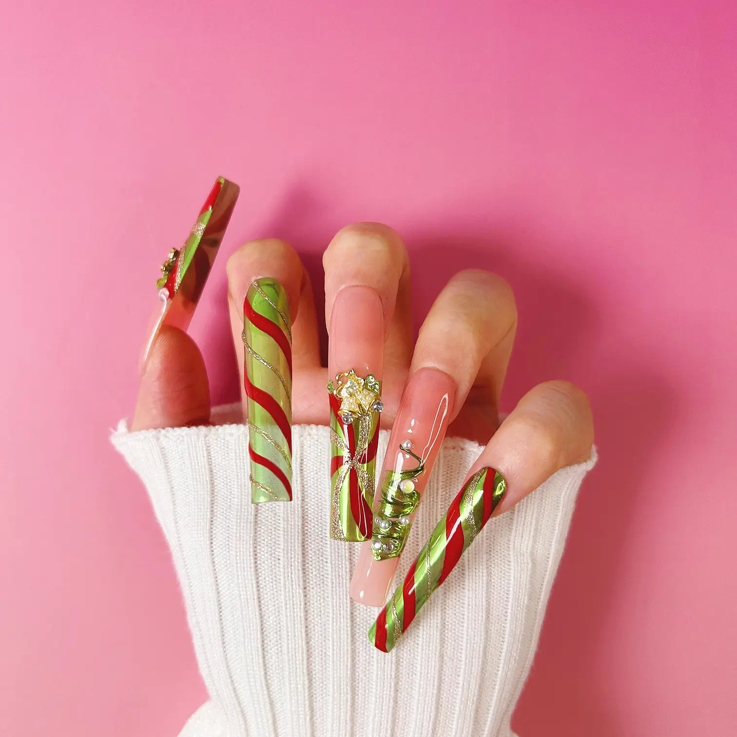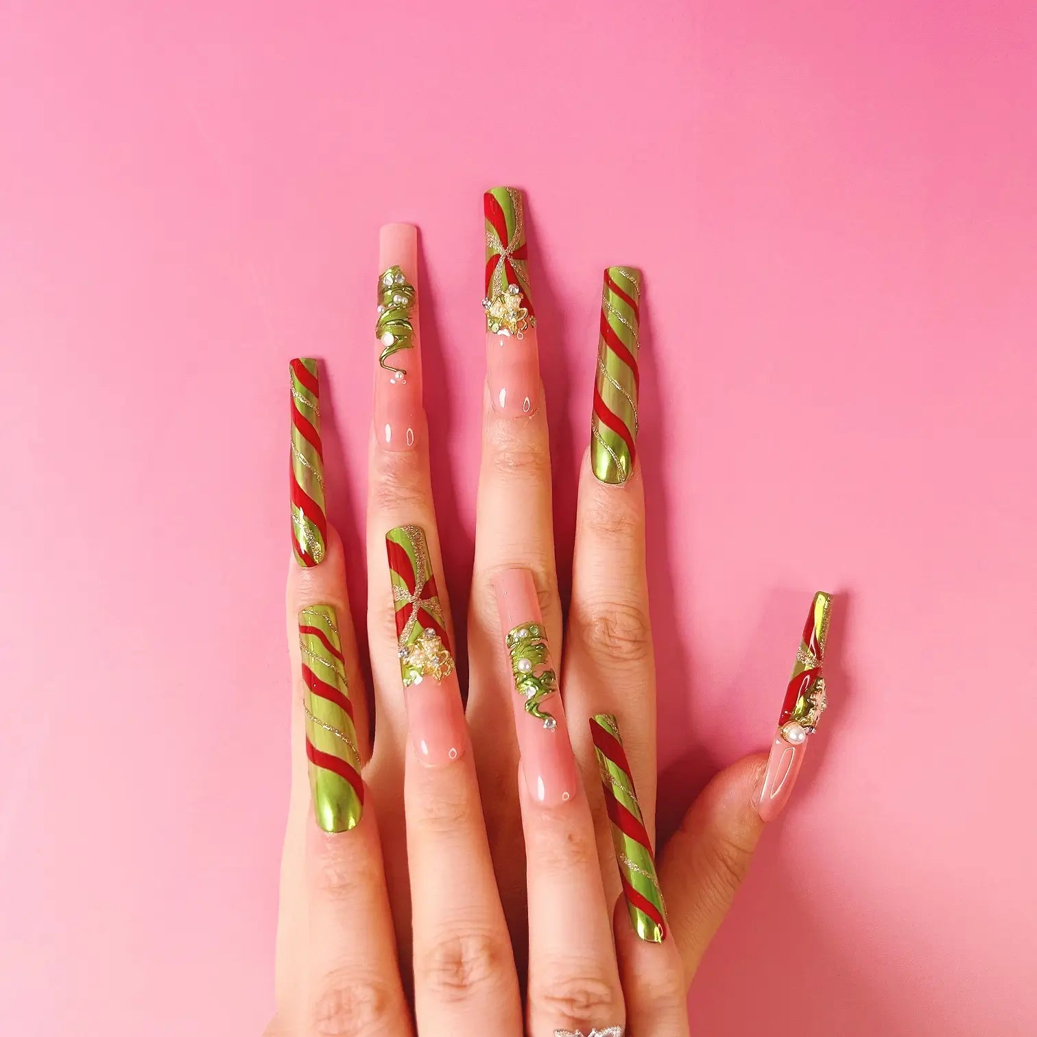 COLOR: GREEN & RED | DESIGN: SNOWFLAKE, JINGLE BELL, RIBBON| FINISH: GLOSSY | LENGTH: EXTRA LONG | BEST SELLERS | STYLE:HOLIDAY LIMITED EDITION | LIMITED EDITION | SHAPE: SQUARE