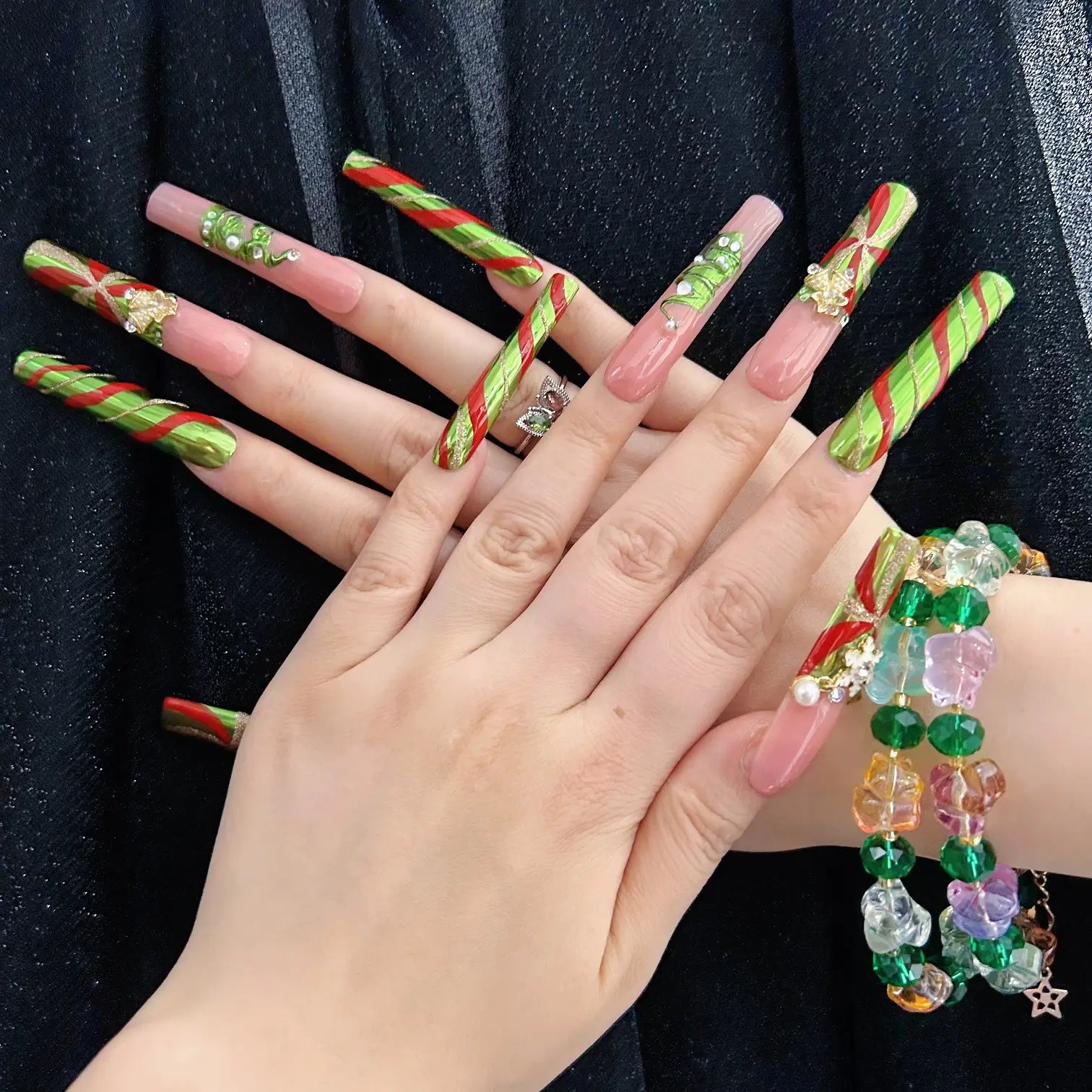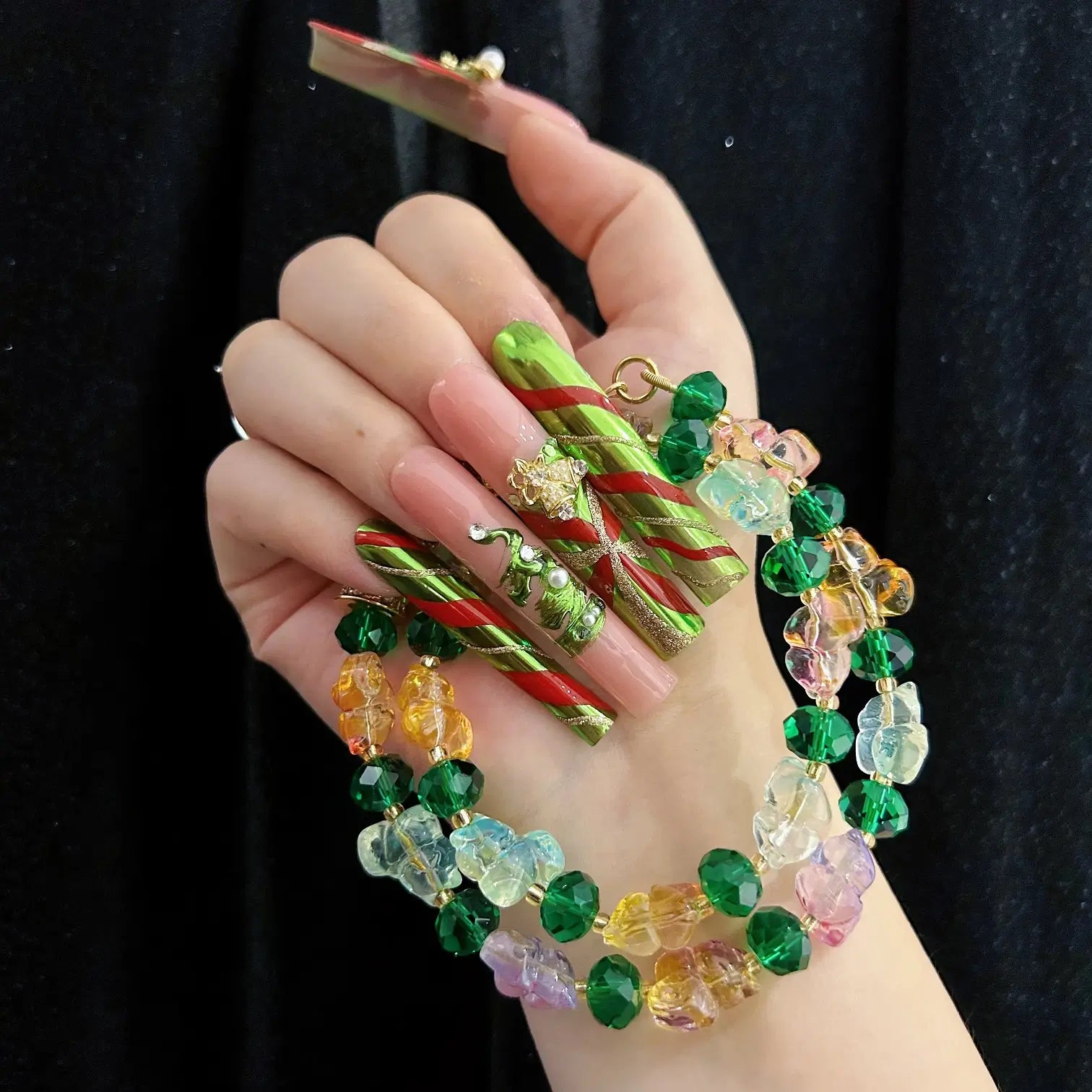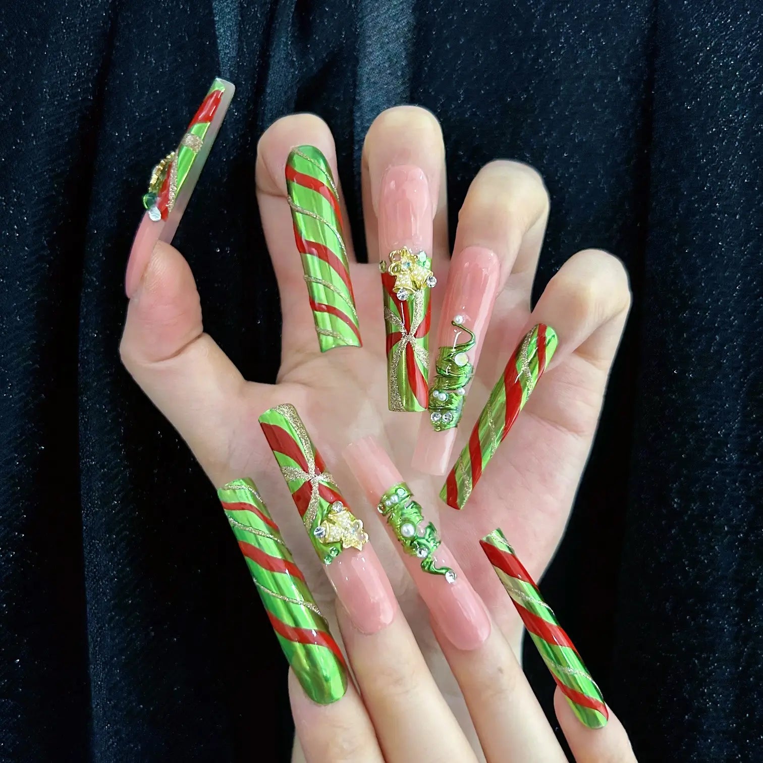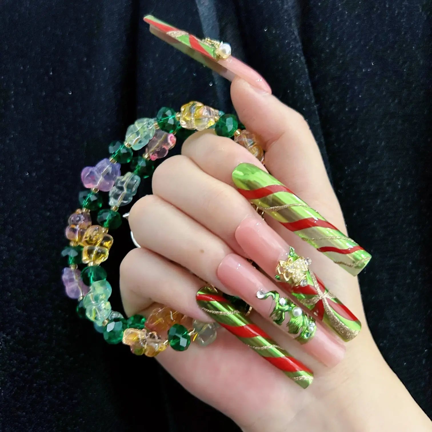 COLOR: GREEN & RED | DESIGN: SNOWFLAKE, JINGLE BELL, RIBBON| FINISH: GLOSSY | LENGTH: EXTRA LONG | BEST SELLERS | STYLE:HOLIDAY LIMITED EDITION | LIMITED EDITION | SHAPE: SQUARE