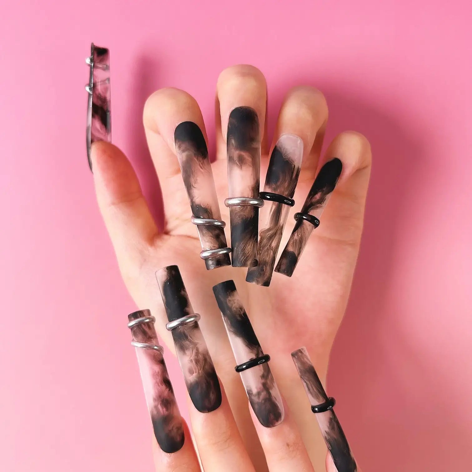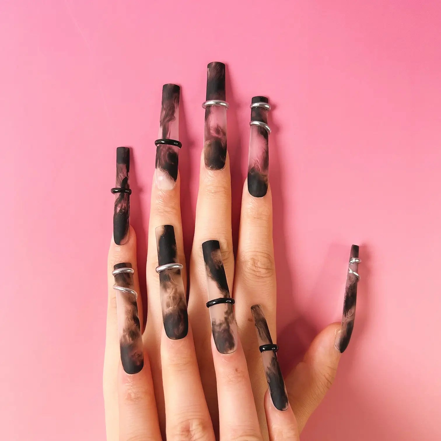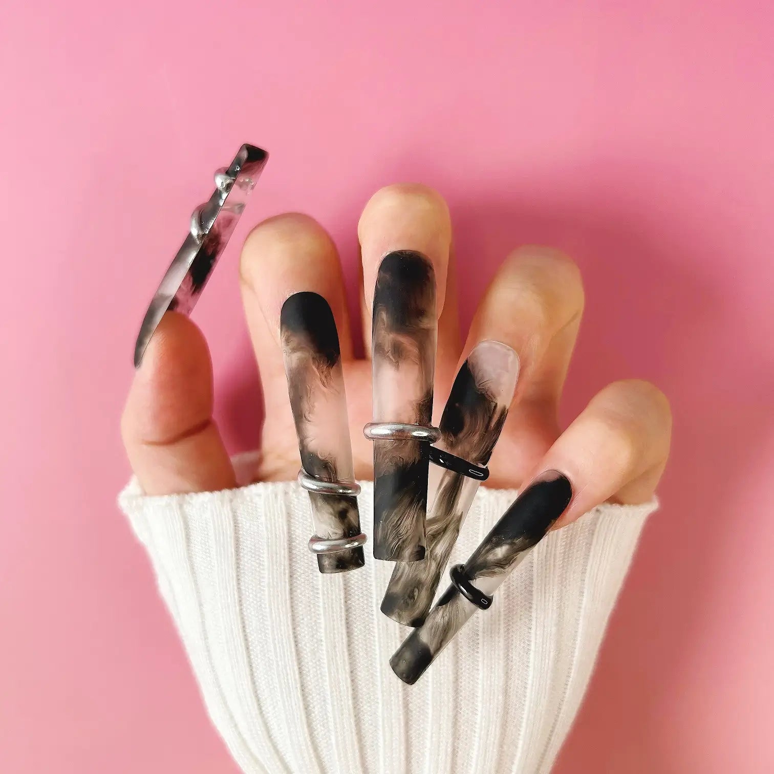 COLOR: TRANSPARENT & BLACK | DESIGN: INK WASH PAINTING | LENGTH: EXTRA LONG | BEST SELLERS | STYLE:HOTTIE | LIMITED EDITION | SHAPE: SQUARE
