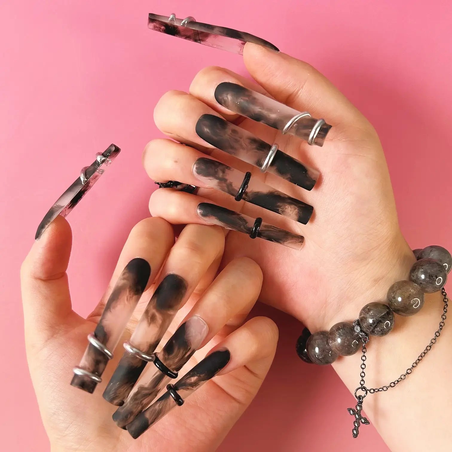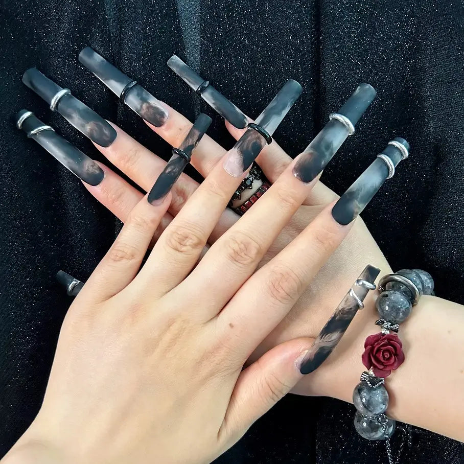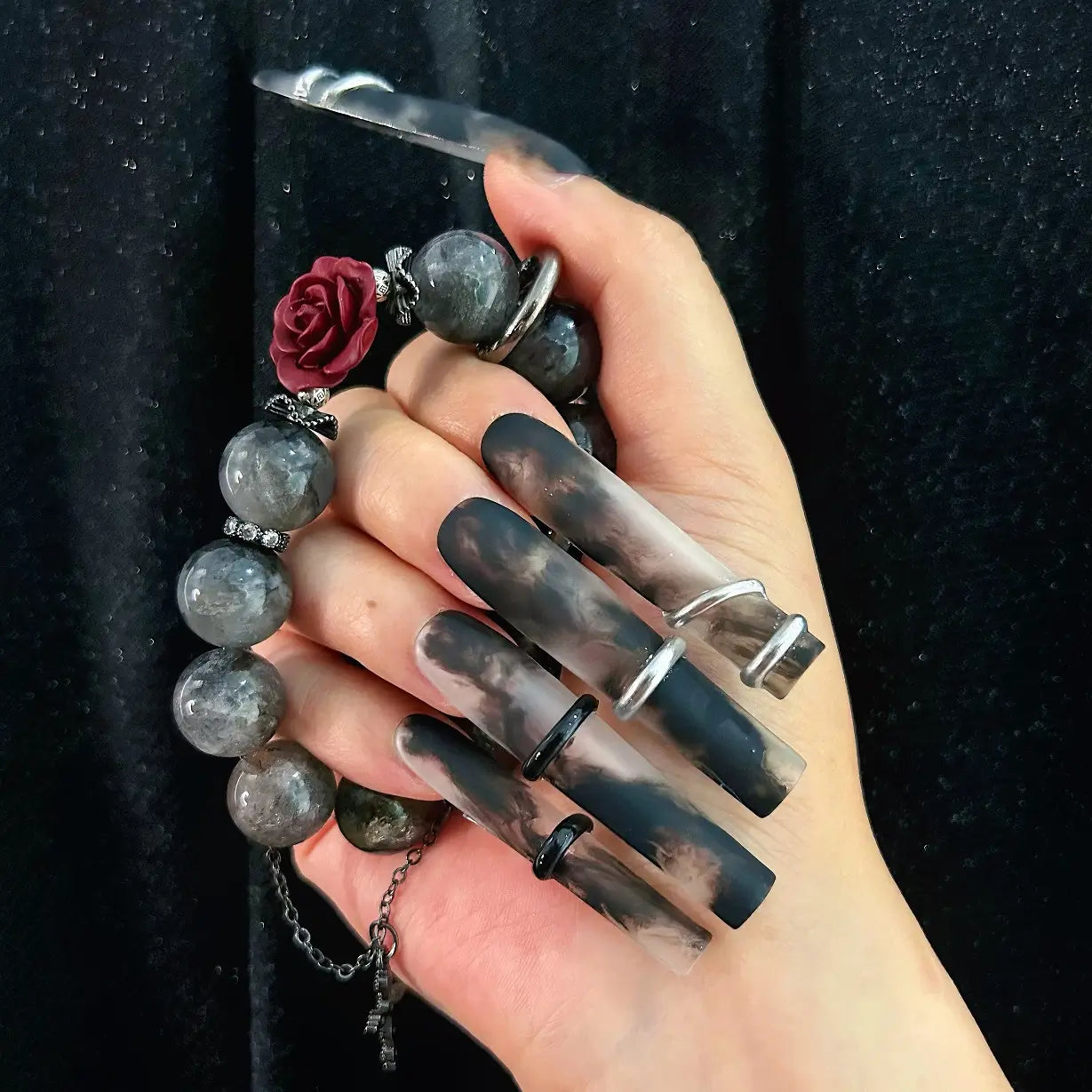 COLOR: TRANSPARENT & BLACK | DESIGN: INK WASH PAINTING | LENGTH: EXTRA LONG | BEST SELLERS | STYLE:HOTTIE | LIMITED EDITION | SHAPE: SQUARE