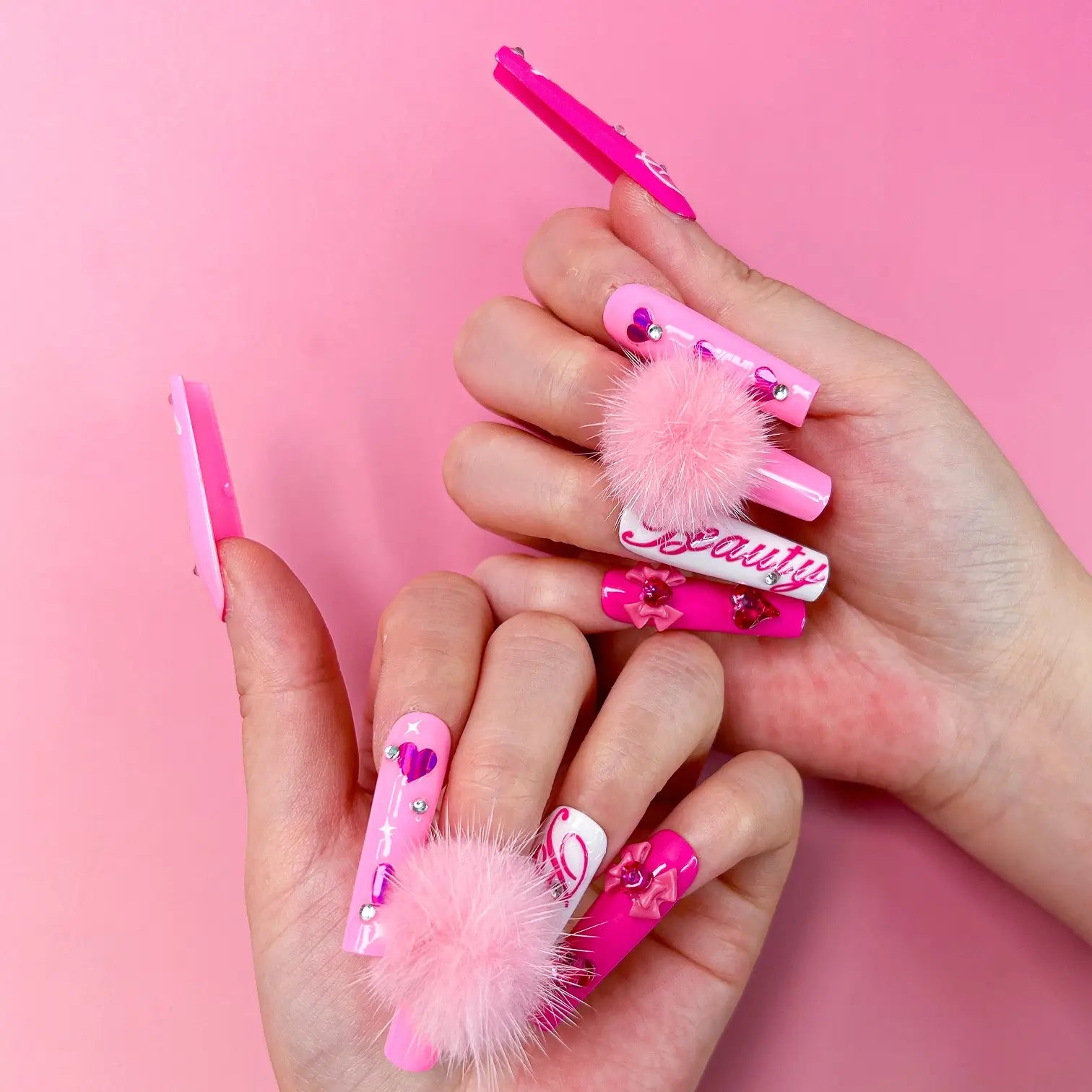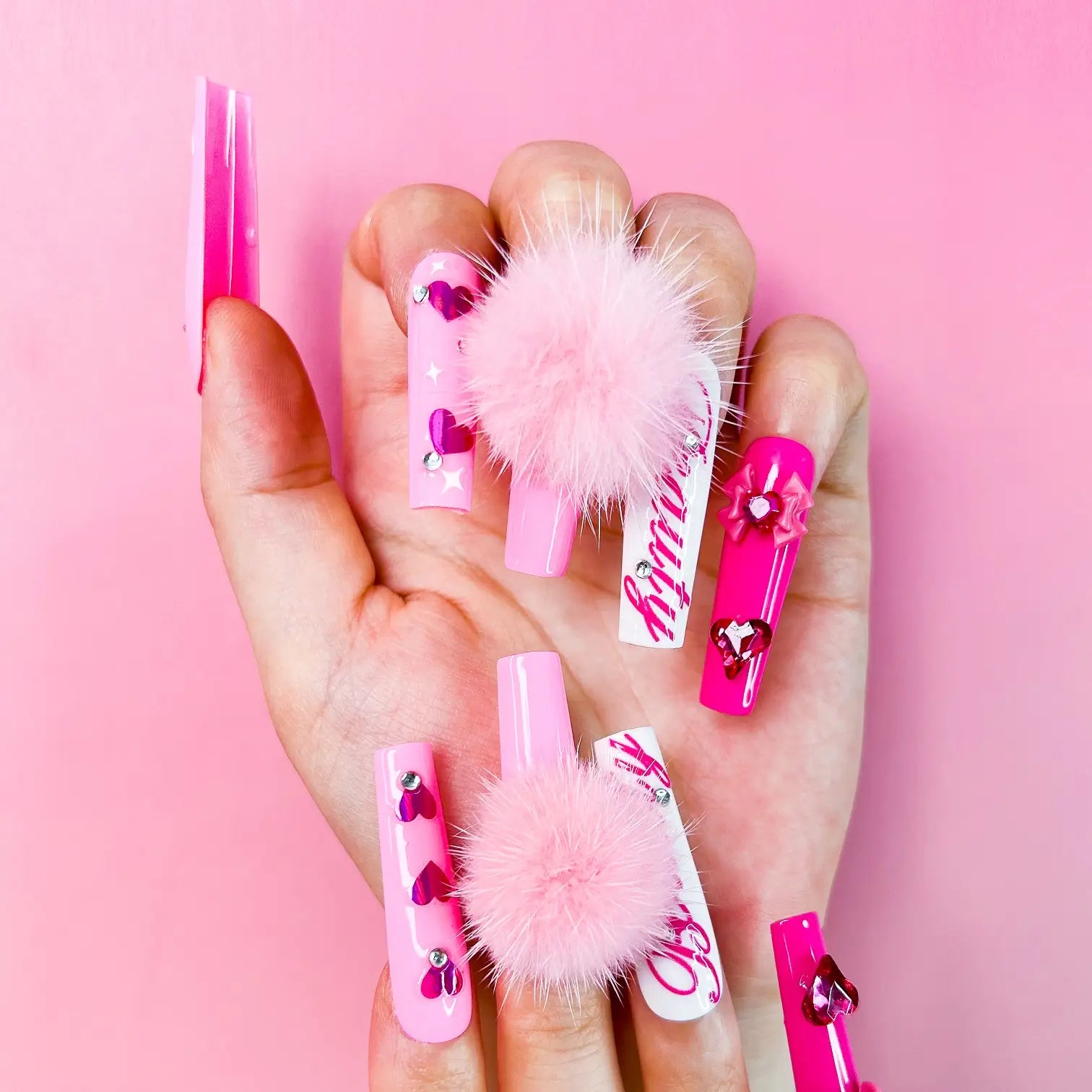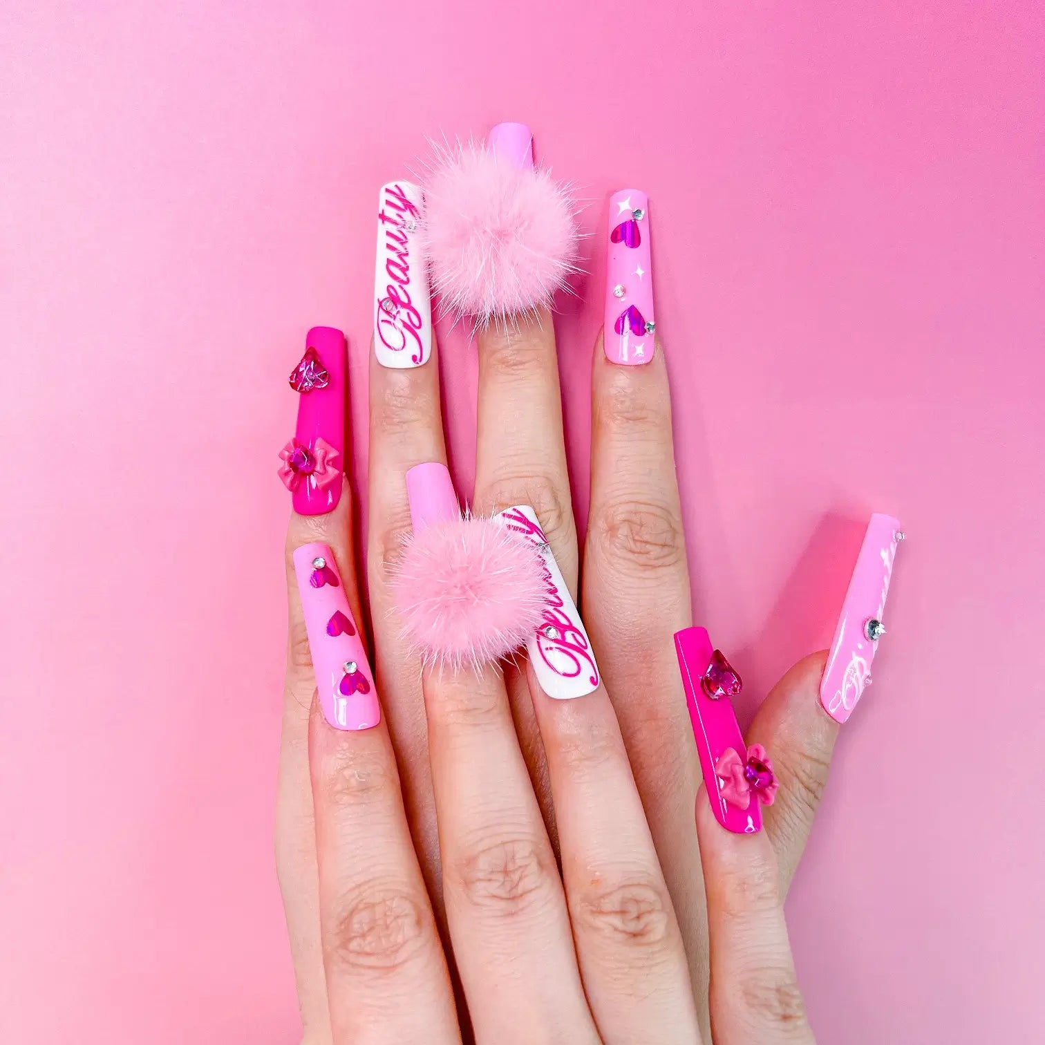 COLOR: PINK & WHITE | DESIGN: CUTE SWEETHEART LIVELY FLUFFINESS | FINISH: GLOSSY | LENGTH: EXTRA LONG | BEST SELLERS | STYLE:HOTTIE | LIMITED EDITION | SHAPE: SQUARE