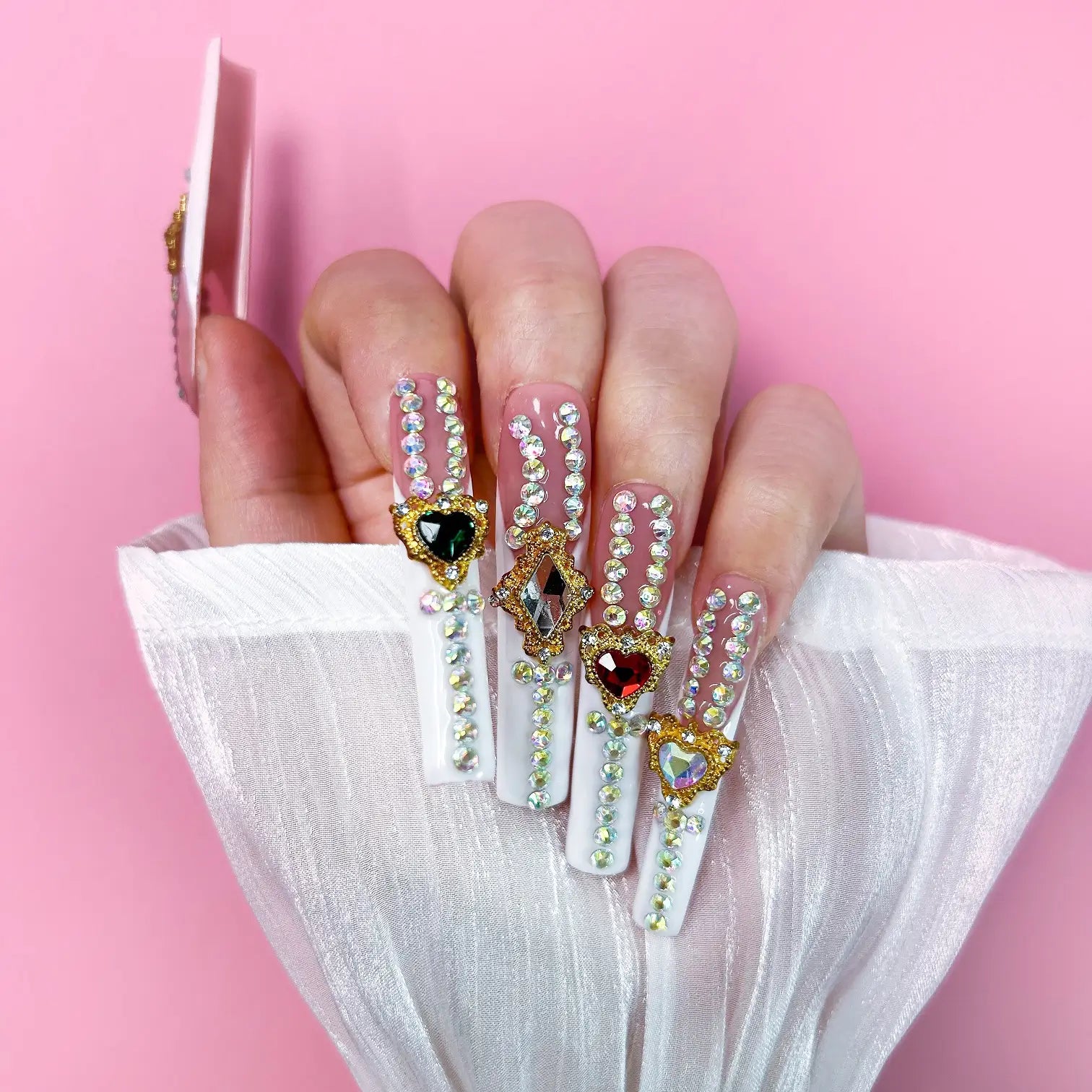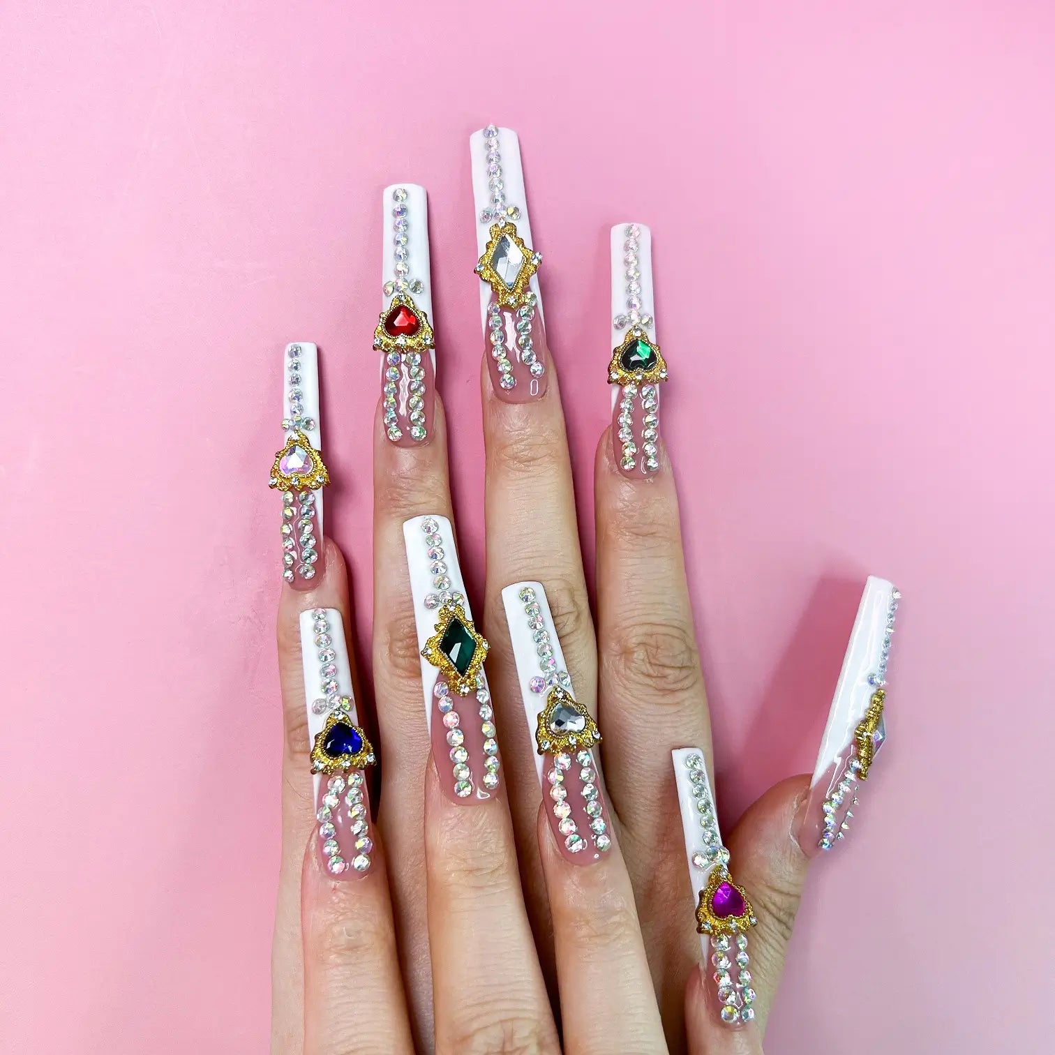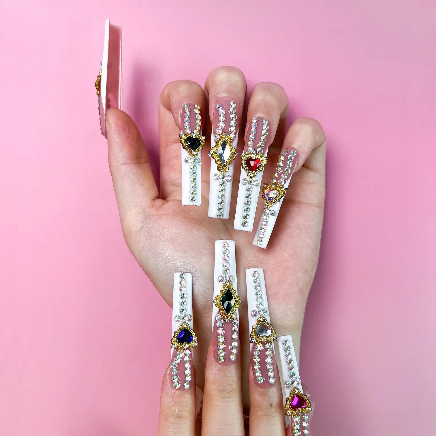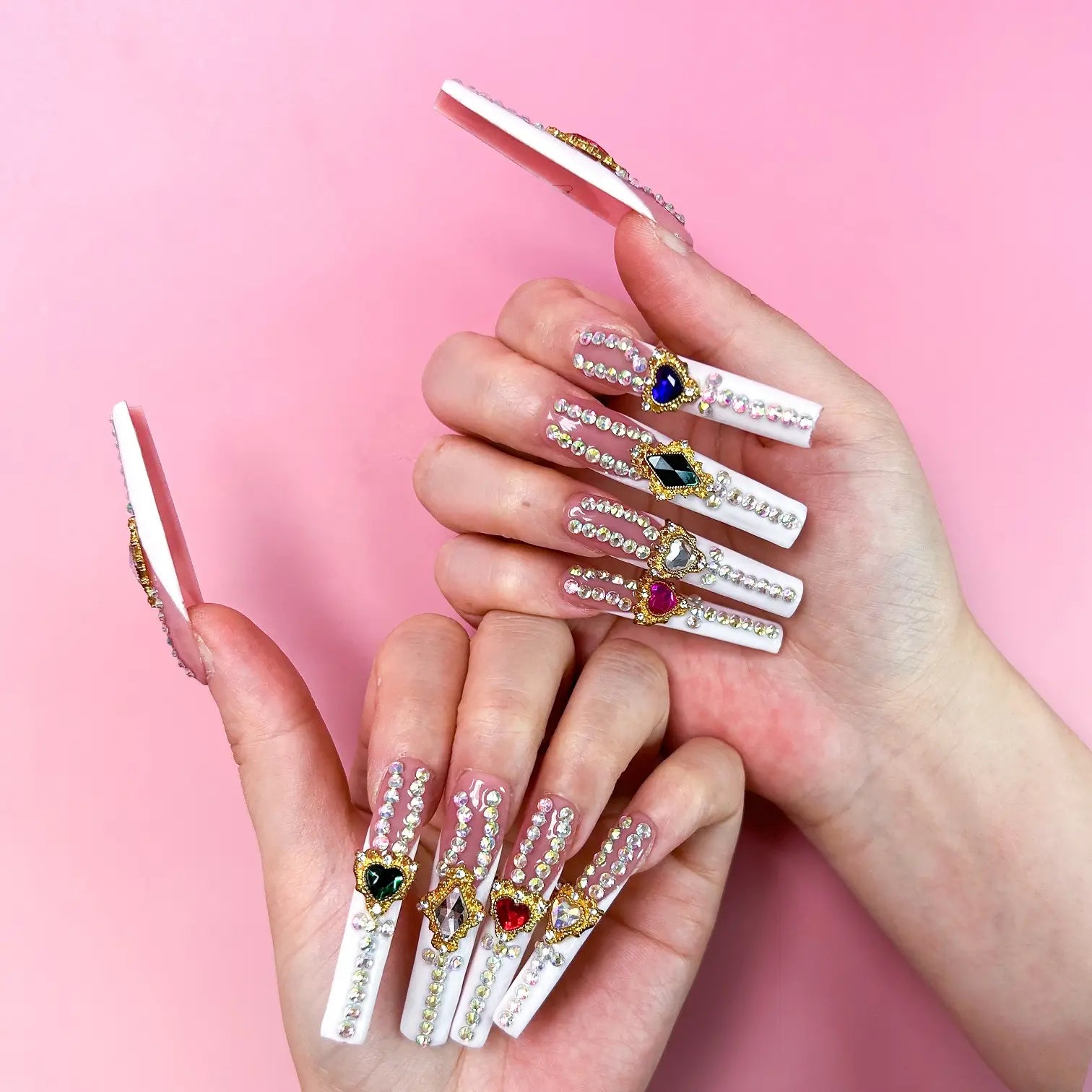 COLOR: PINK WHITE GRADIENT | DESIGN: MULTICOLORED GEMSTONES SHIMMERING WITH PEARL ACCENTS | FINISH: GLOSSY | LENGTH: EXTRA LONG | BEST SELLERS | STYLE:HOTTIE | LIMITED EDITION | SHAPE: SQUARE