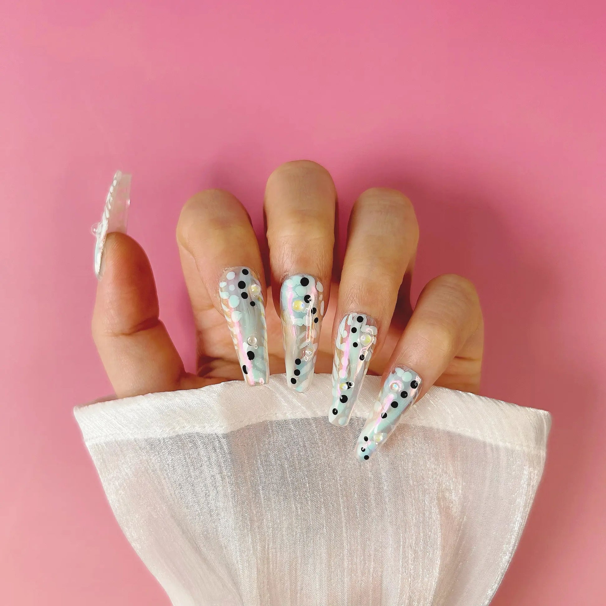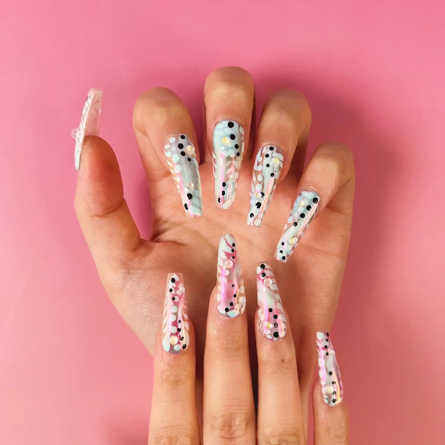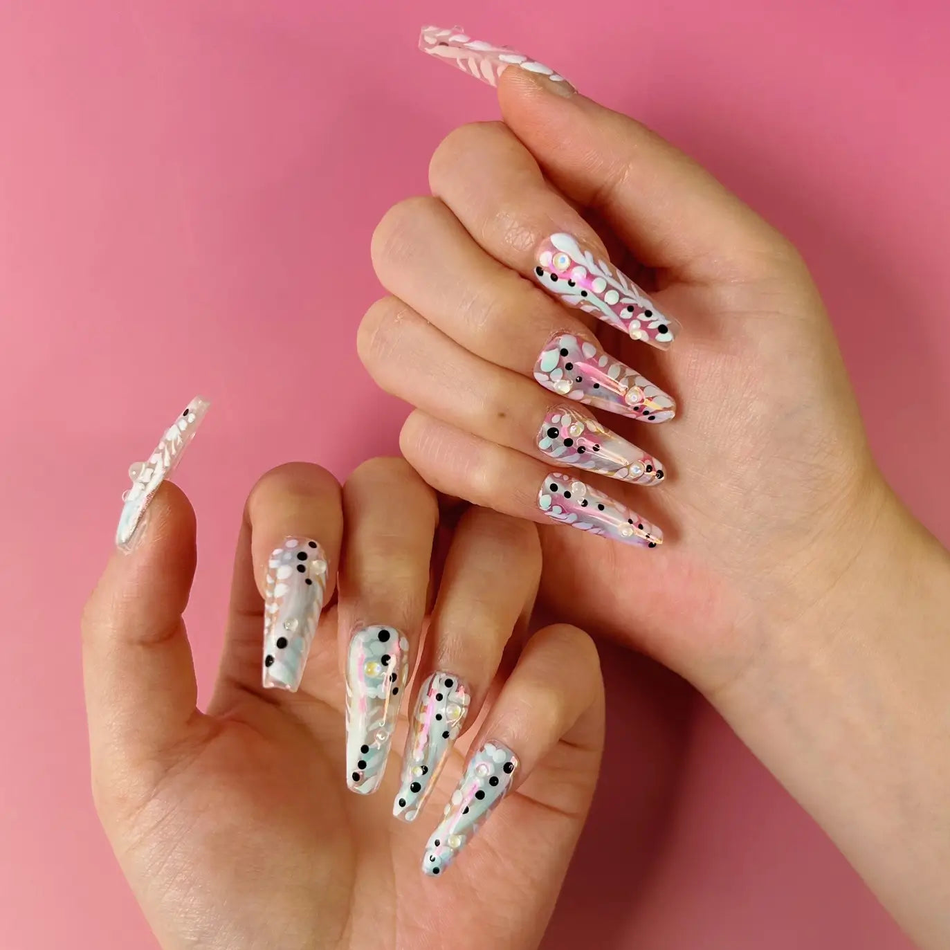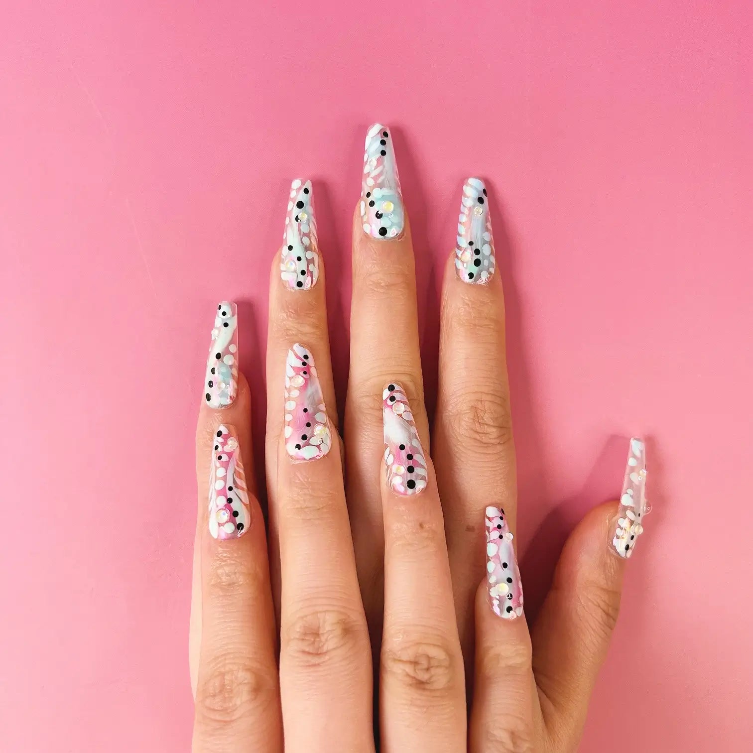 COLOR: PINK, GREEN, WHITE | DESIGN:EMBOSSING | FINISH: GLOSSY | LENGTH: LONG | BEST SELLERS | STYLE:HOTTIE | SHAPE: COFFIN