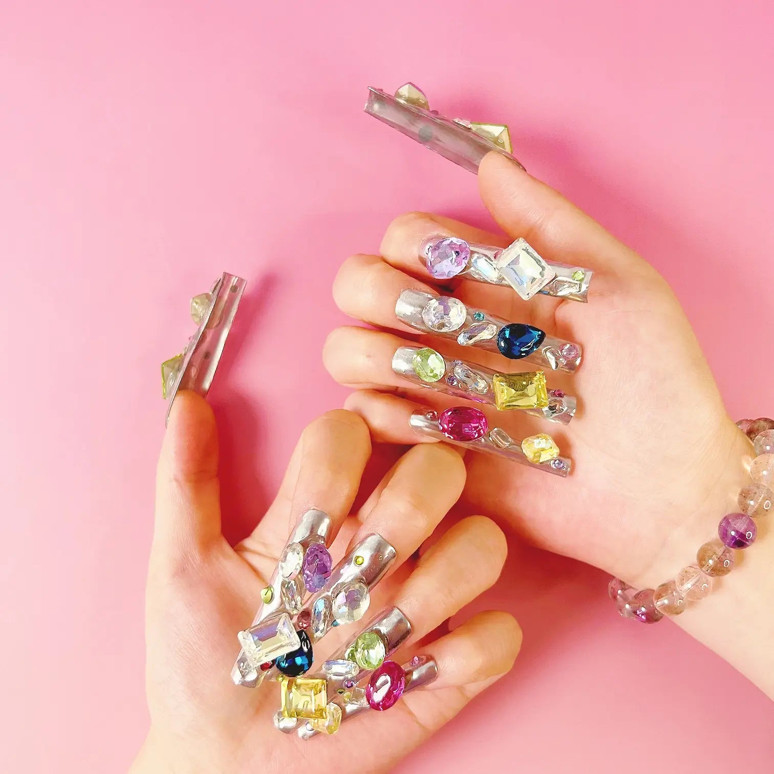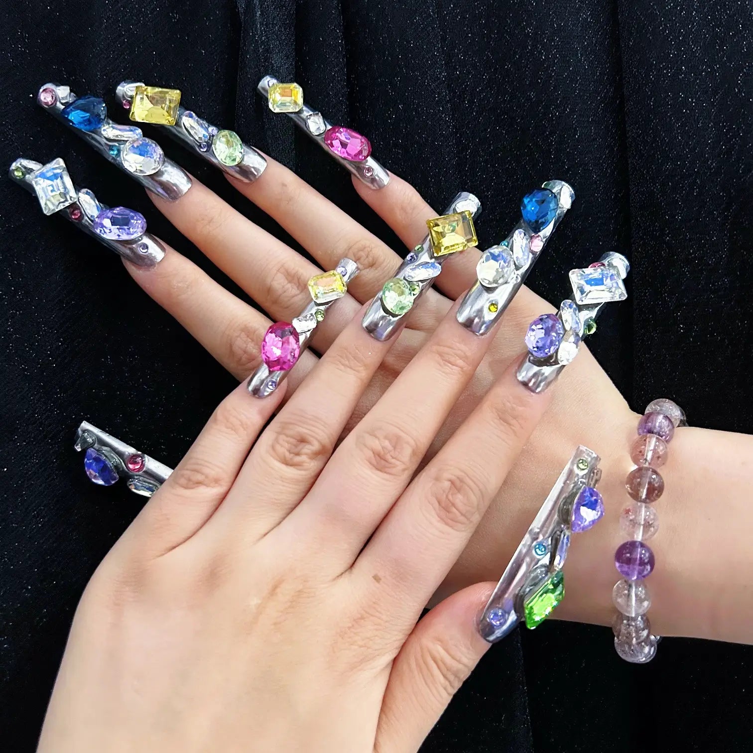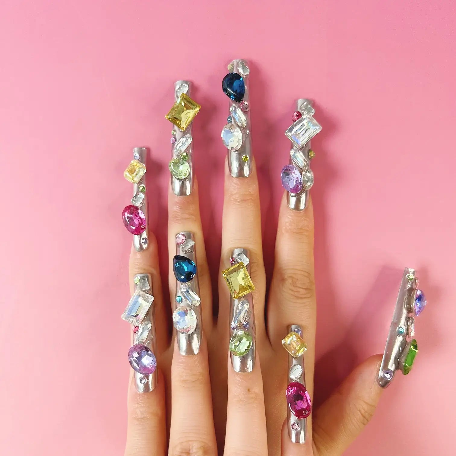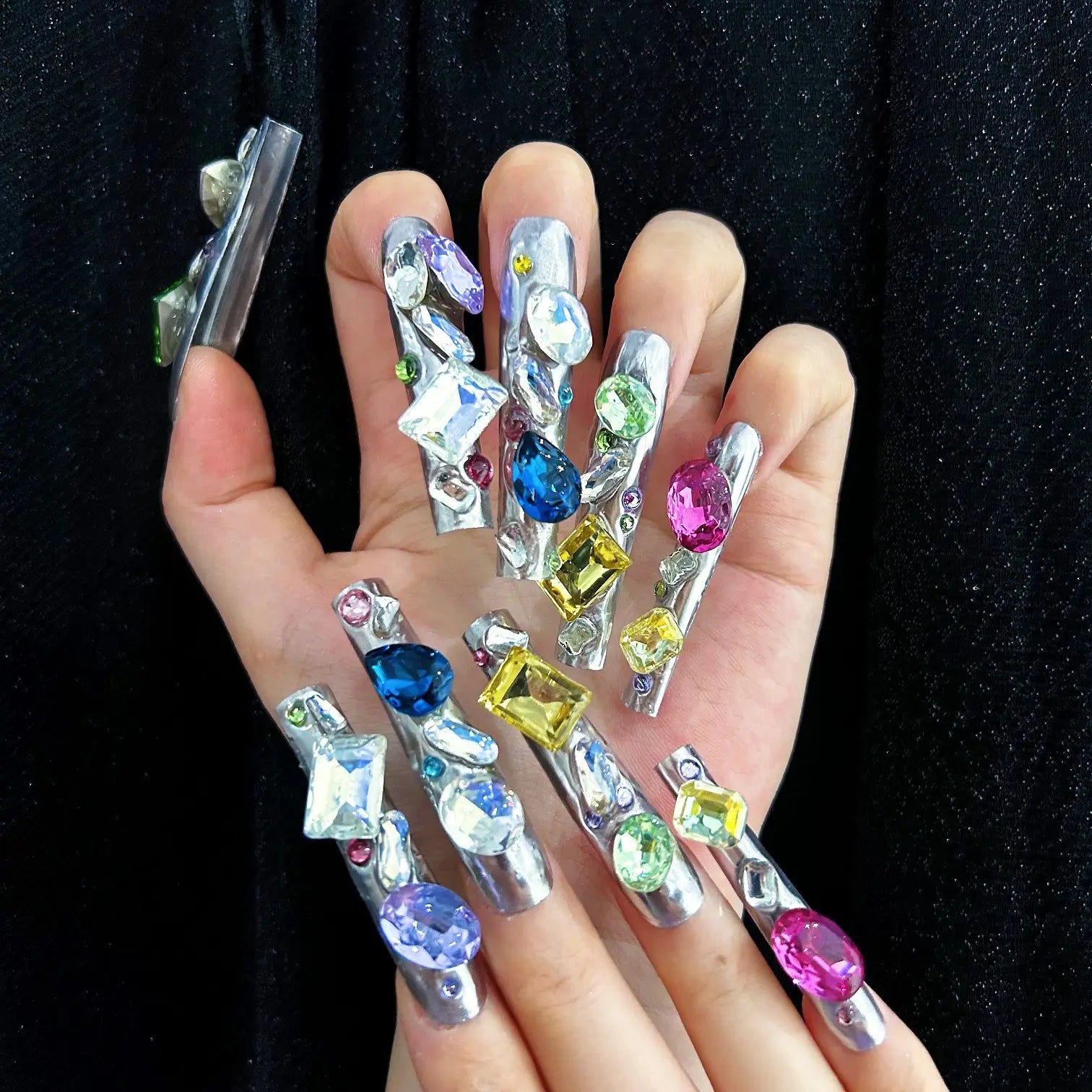 COLOR: SILVER & COLORFUL | DESIGN: SYNTHETIC RESIN DIAMOND| FINISH: GLOSSY | LENGTH: EXTRA LONG | BEST SELLERS | STYLE:HOTTIE | LIMITED EDITION | SHAPE: SQUARE