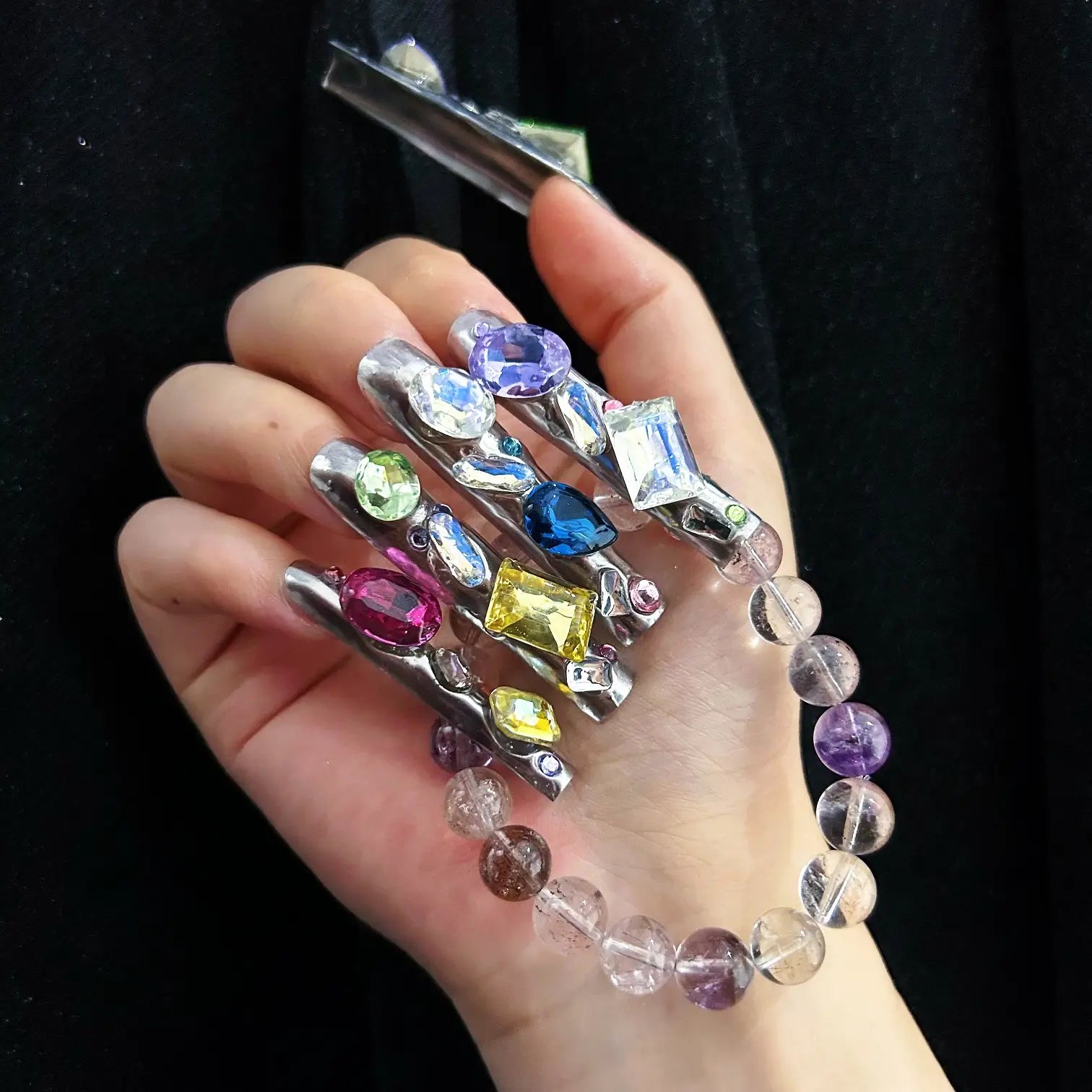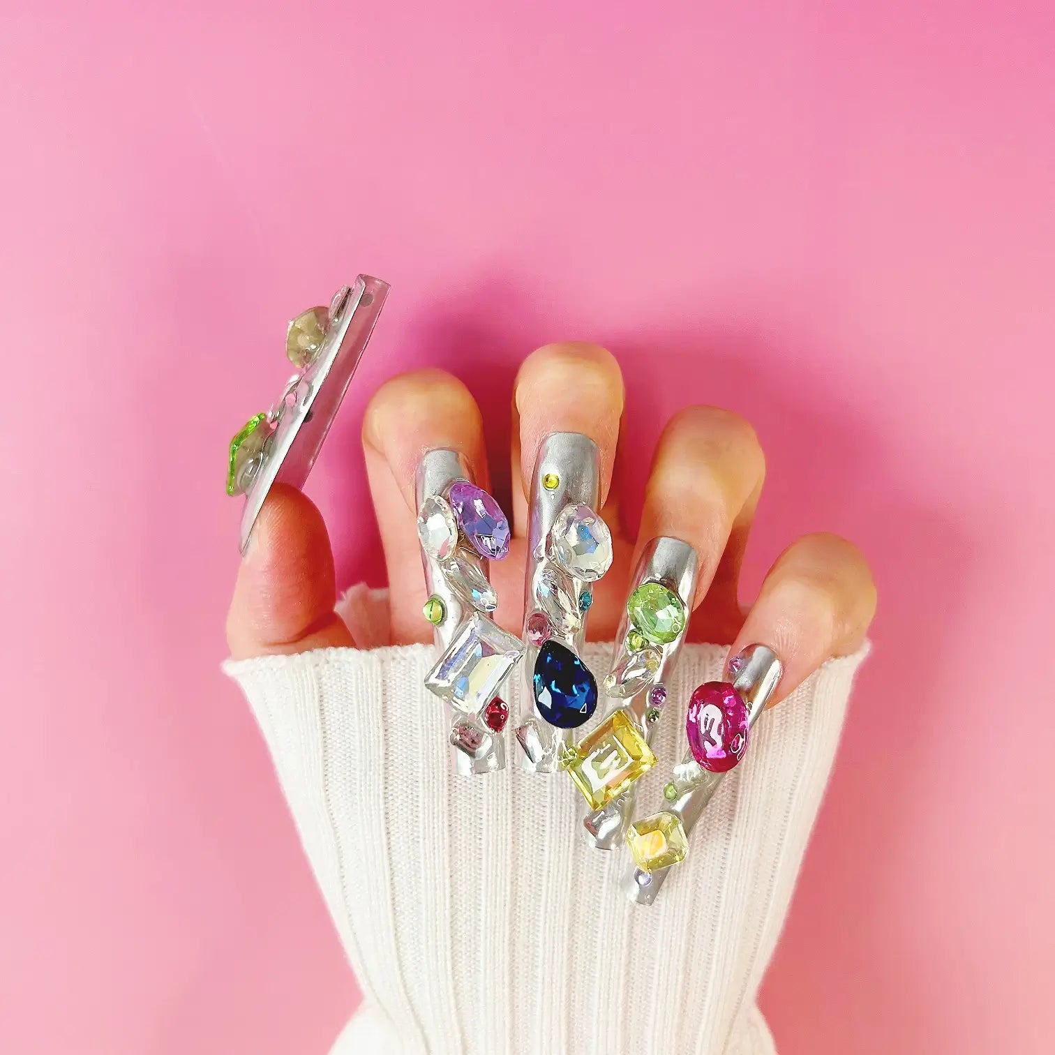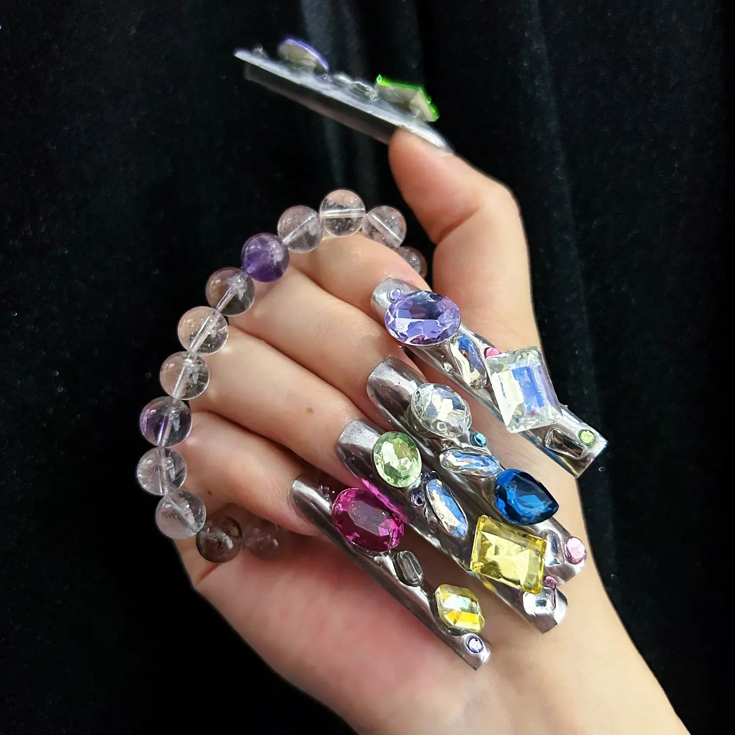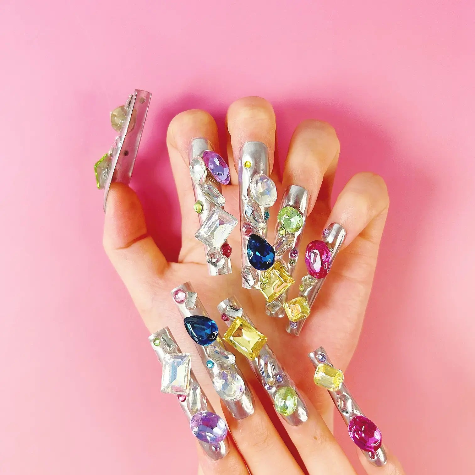 COLOR: SILVER & COLORFUL | DESIGN: SYNTHETIC RESIN DIAMOND| FINISH: GLOSSY | LENGTH: EXTRA LONG | BEST SELLERS | STYLE:HOTTIE | LIMITED EDITION | SHAPE: SQUARE