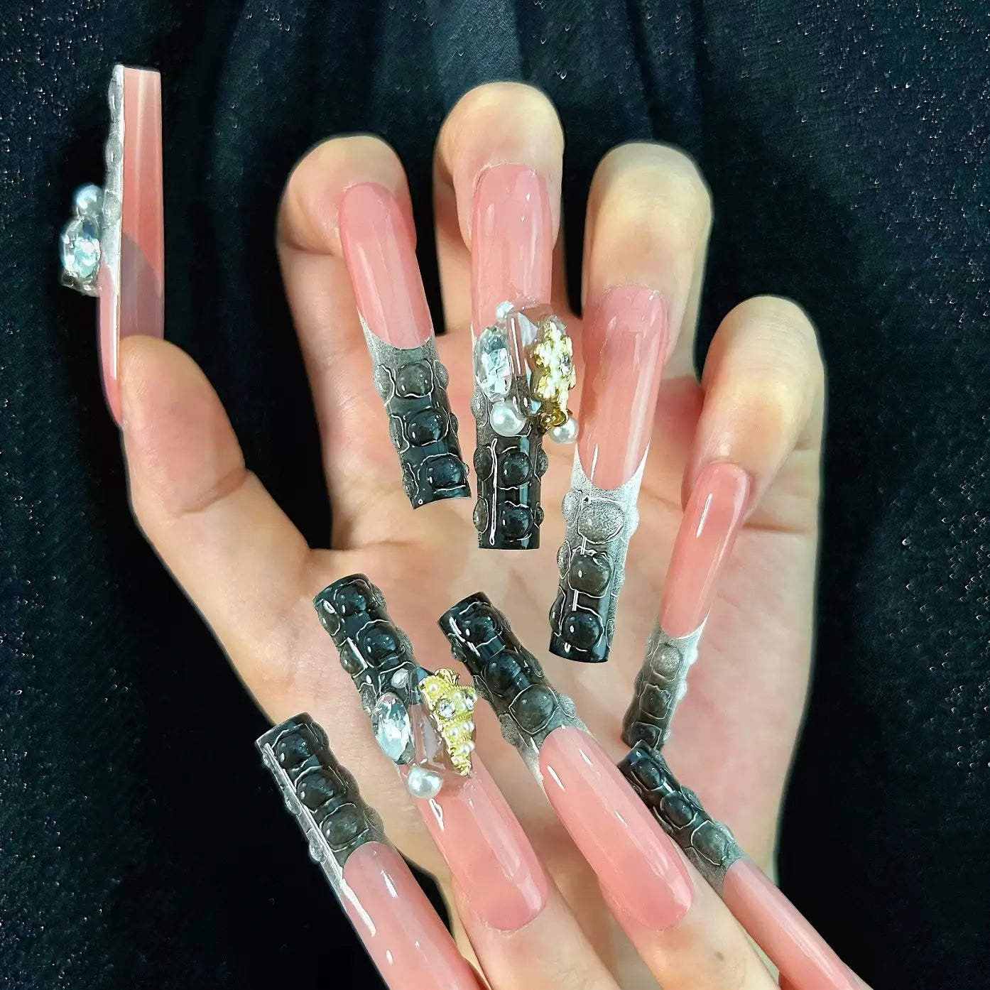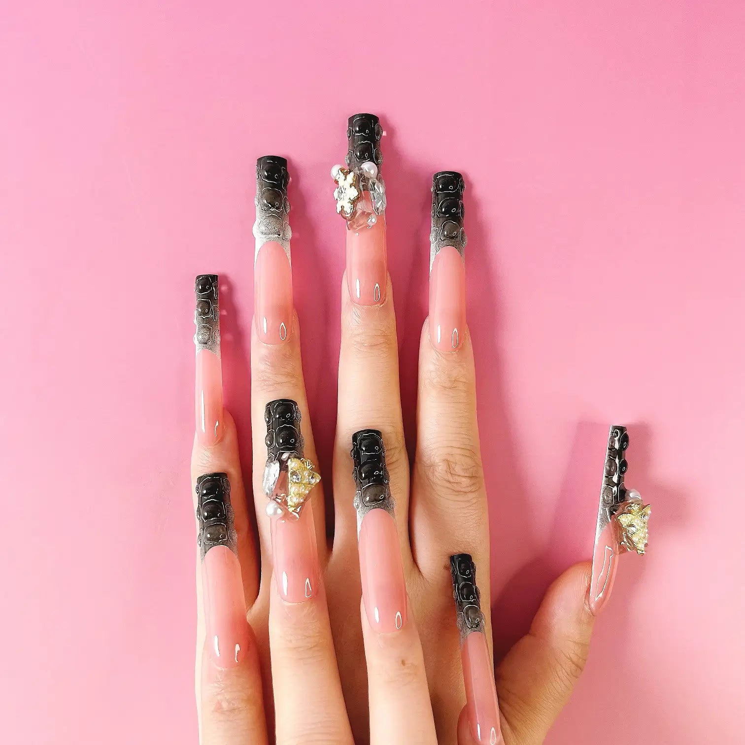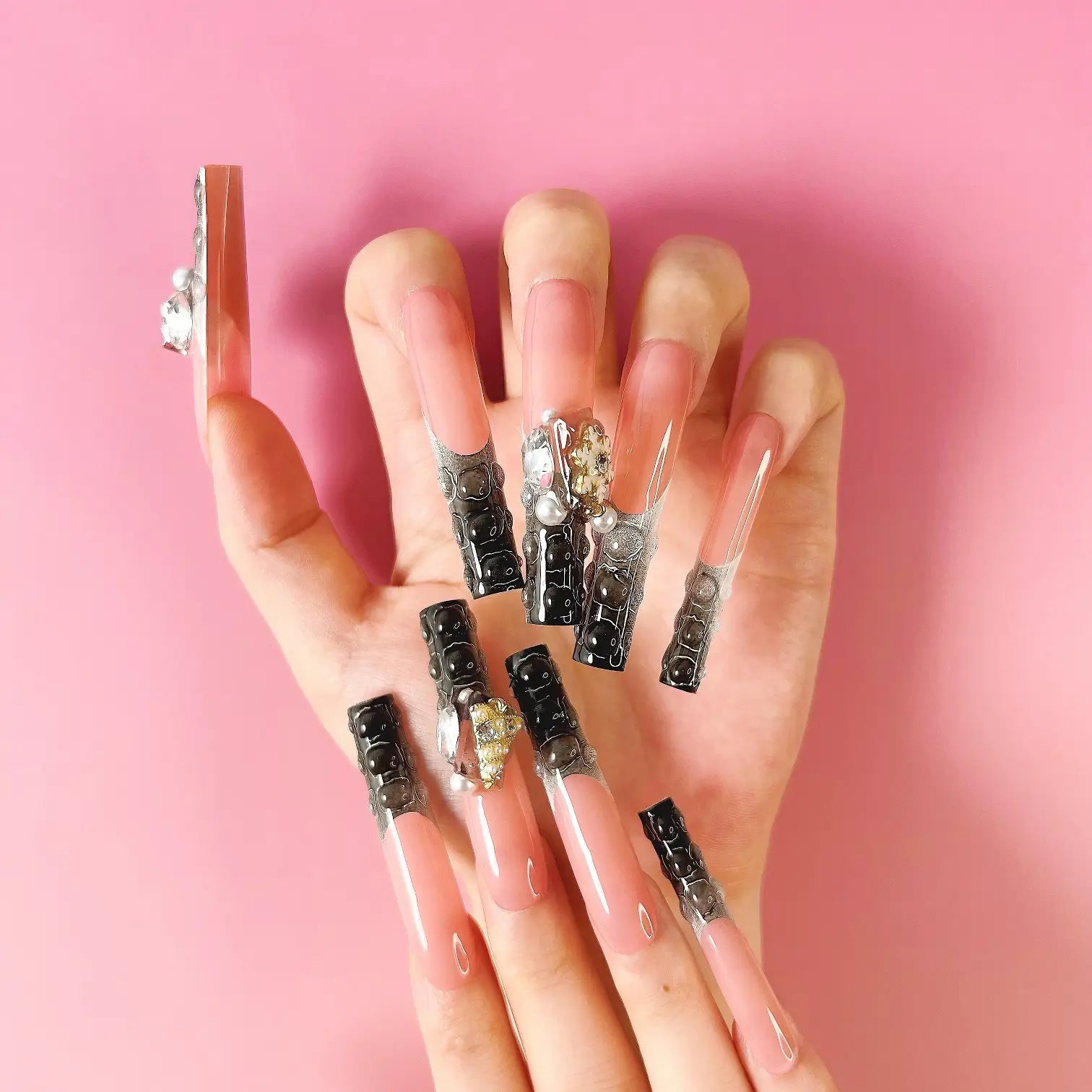 COLOR: NUDE & BLACK AND WHITE GRADIENT | DESIGN: SYNTHETIC RESIN DIAMOND, CHRISTMAS TREE & SNOWFLAKE | FINISH: GLOSSY | LENGTH: EXTRA LONG | BEST SELLERS | STYLE:HOTTIE | LIMITED EDITION | SHAPE: SQUARE