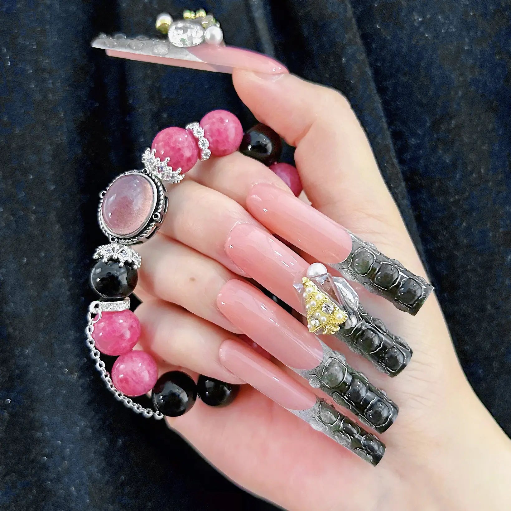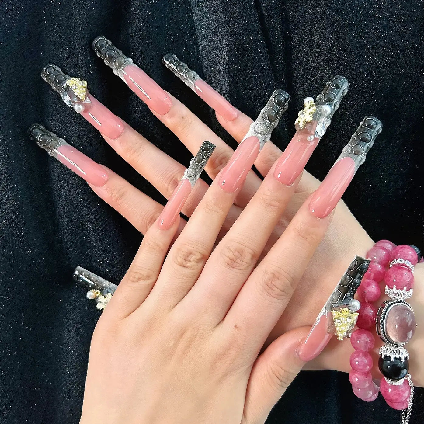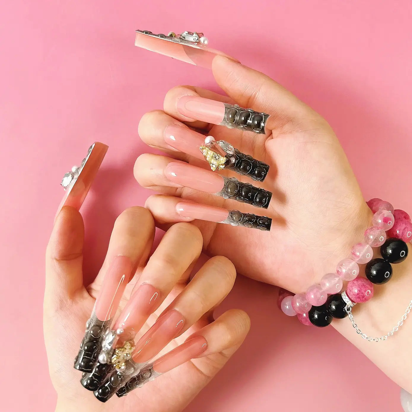 COLOR: NUDE & BLACK AND WHITE GRADIENT | DESIGN: SYNTHETIC RESIN DIAMOND, CHRISTMAS TREE & SNOWFLAKE | FINISH: GLOSSY | LENGTH: EXTRA LONG | BEST SELLERS | STYLE:HOTTIE | LIMITED EDITION | SHAPE: SQUARE
